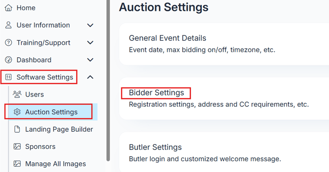 Go to Software Settings > Auction Settings > Bidder Settings.