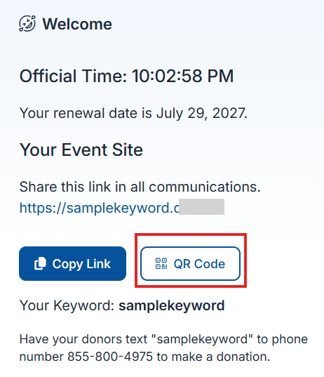 This QR code brings guests straight to your public event page where they can learn more, donate, or buy tickets.