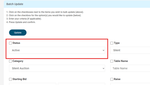 Set any items you’re not ready to show to Invisible (to hide them completely) or Closed (to preview but not allow bids).