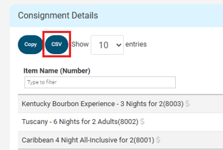 Click the CSV button at the top of the page to download the report.