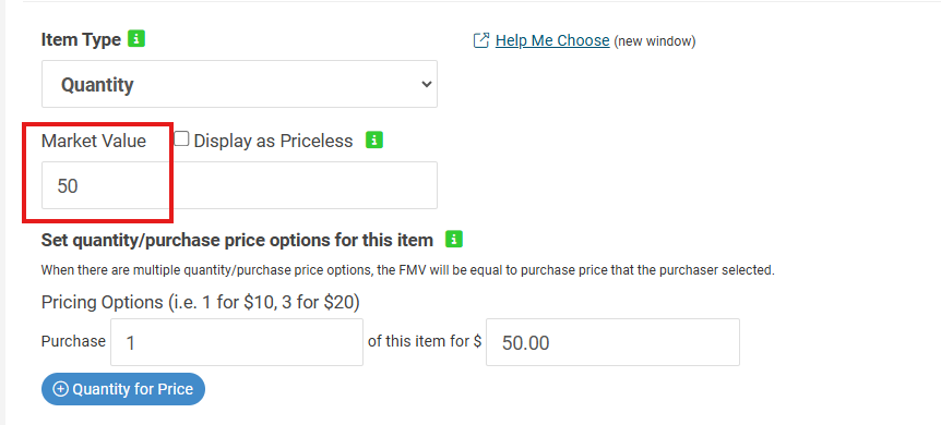 ℹ️ Info: FMV only applies to quantity items like raffle tickets, wine pulls, or games.