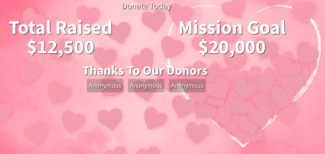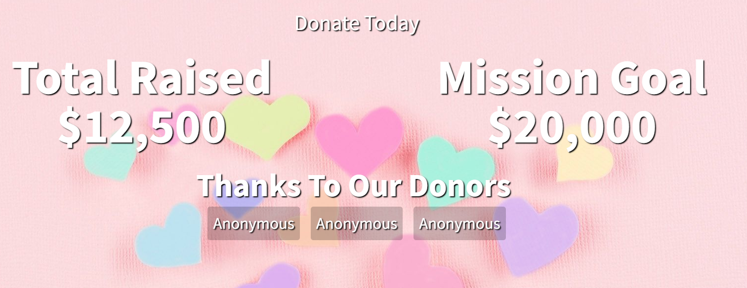 Animated hearts rise with each donation, creating a sense of growing impact.