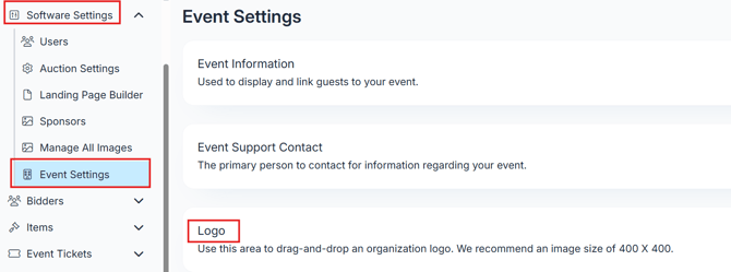This will update the logo on receipts, the bidding site, and other public-facing event pages.