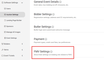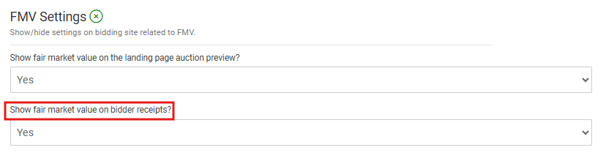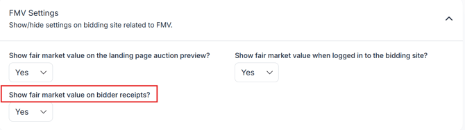 Choose whether to show the FMV on bidder receipts by selecting yes or no from the dropdown.
