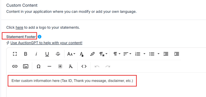 Edit the Statement Footer field.