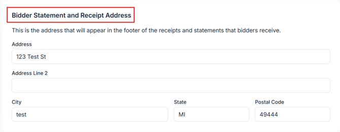 Scroll down to Bidder Statement and Receipt Address.