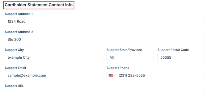 Also fill out Cardholder Statement Contact Info.