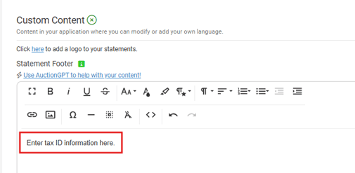 Add additional messaging — such as your nonprofit’s tax ID or thank-you notes — to appear at the bottom of the receipt.