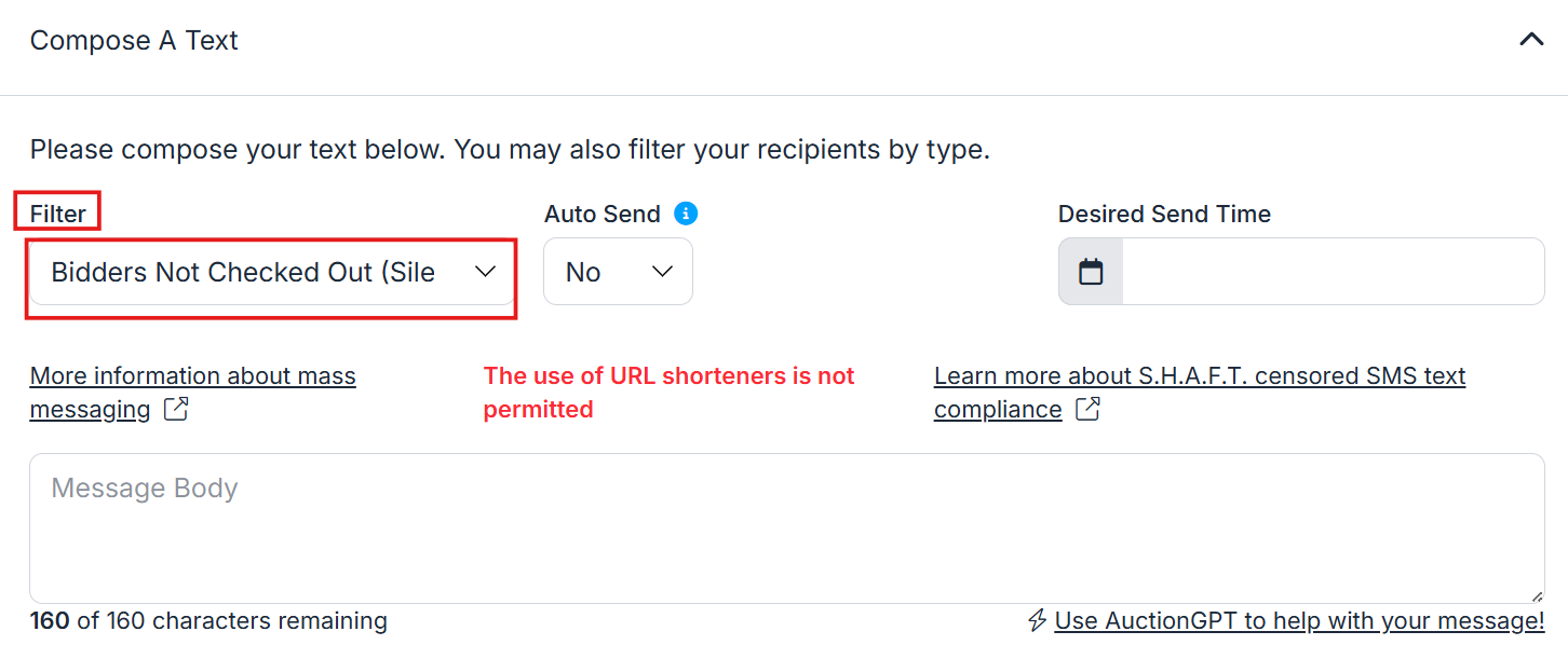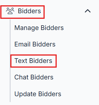 - Go to Bidders > Text or Email Bidders. For this example, we'll use Text Bidders.