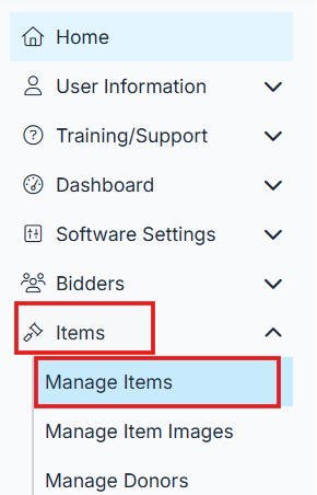 Select Manage Items.