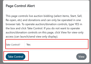 Take Control? Enter Yes then click Take Control (before event starts)