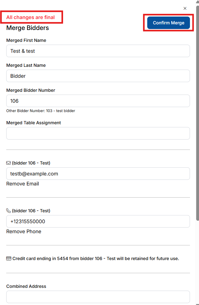 Double-check all information before confirming the merge.