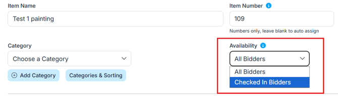💡 Tip: A bidder is considered “checked in” once they’ve been marked as such in the Butler or Bidders tab. If they’re not checked in, they won’t see the item at all.