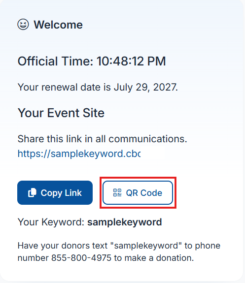 Find your QR code on the Welcome Page