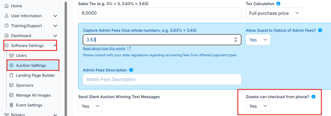 Software Settings > Auction Settings > Payment.