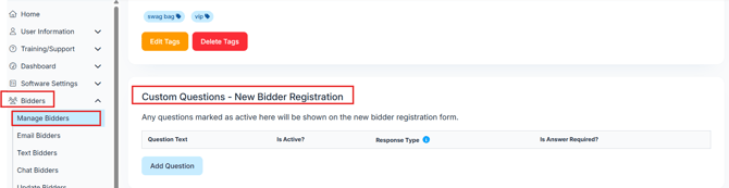Scroll down until you see the section labeled Custom Questions – New Bidder Registration.
