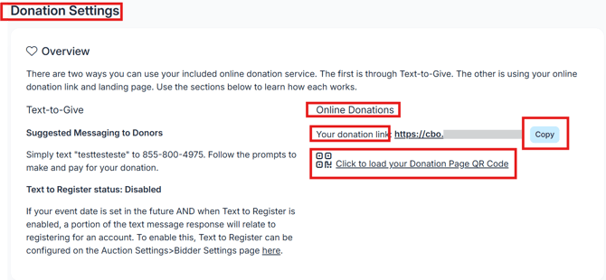 Locate your donate link under Overview. Copy your Donation Link to share directly with supporters via text, email, or website.