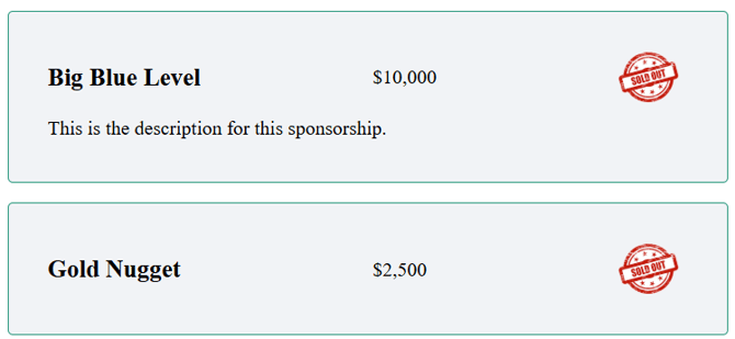 If selecting a ticket or sponsorship would push the event over its guest limit, it will show as Sold Out.