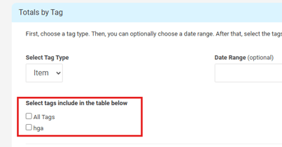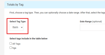 Click Totals by Tag from the bottom of the list.