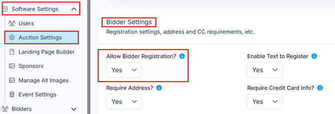 OR go to Bidder Settings and turn Allow Bidder Registration to Yes.