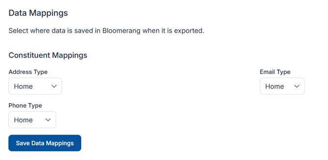 These mappings control where information appears in Bloomerang’s constituent profiles.