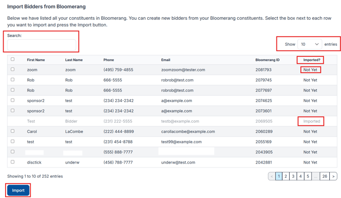 Go to Integrations > Bloomerang > Import Bidders tab.