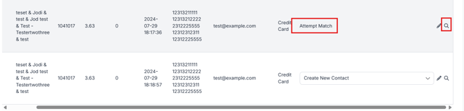 ⚠️If a sale is marked as Attempt Match, be sure to click the magnifying glass icon. This indicates there is more than one contact available. If you export the sale while it’s set to Attempt Match, it will attach to the first contact in the list, which may not be the correct one.