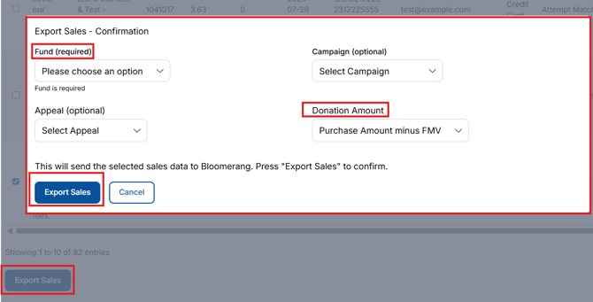 Go to Integrations > Bloomerang > Export Sales.