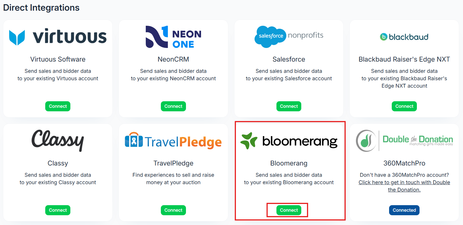 Connecting your Bloomerang account to ClickBid allows you to seamlessly sync donor and bidder data, export sales, and map constituent and transaction fields. This guide walks you through setting up the integration and making the most of Bloomerang within your ClickBid admin.