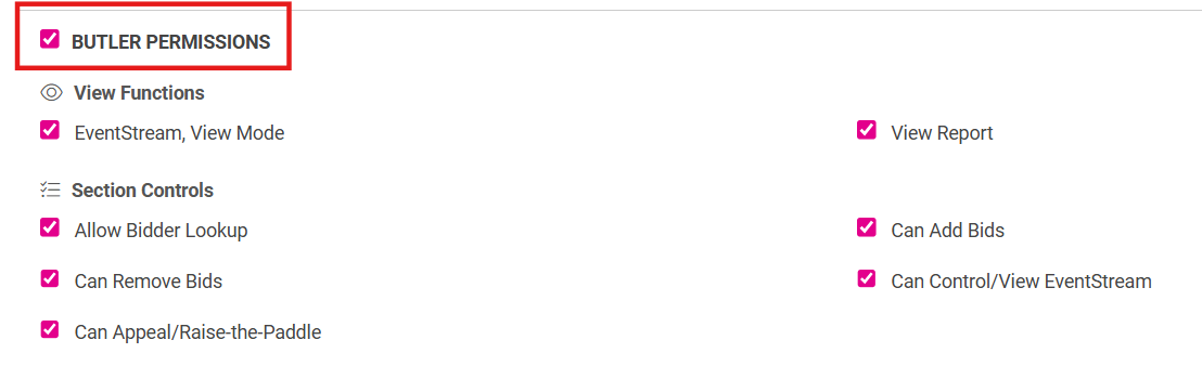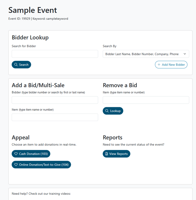 - You will then see the Butler homepage to begin check-in, check-out, adding live winning bidders, adding donations, or concerige bidding.
