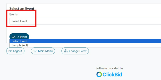- Select an Event via dropdown.