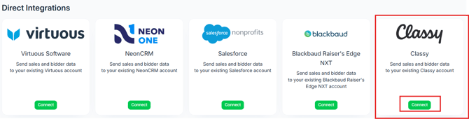 Go to Integrations > Bidders Not in Classy.
