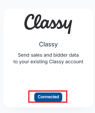 A: Go to Integrations > Dashboard, find the Classy card, and click the Connected button.