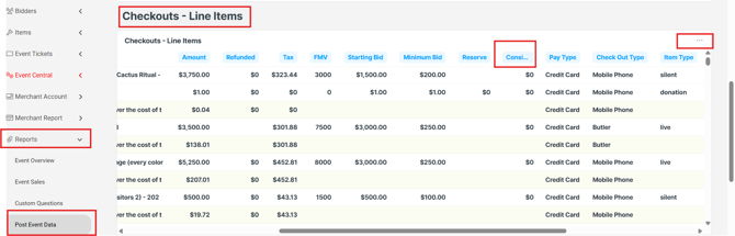 Navigate to Reports > Post Data Event > Event Payments>Checkouts-Line Items