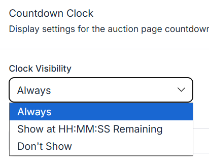 You’ll see three options for how the clock behaves on your public bidding site: