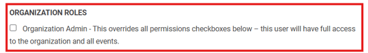 - If an Organization Admin needs to be changed, the current Organization Admin can make this change under Organization > Users > Organization Roles.