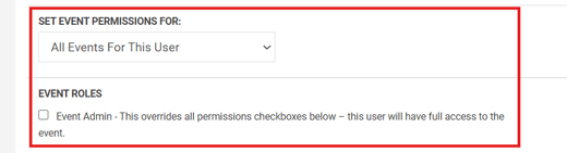 - Can create other Event Admins and assign permissions up to or equal to the permissions they have access to.