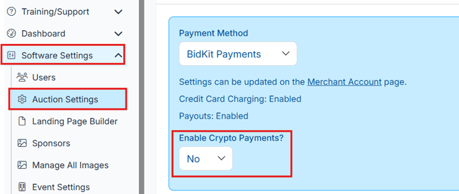 - Go to Software Settings > Auction Settings > Payment.