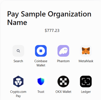 What the donors will see when checking out with Crypto: