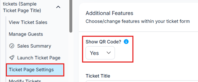 Go to Event Tickets > Ticket Page Settings > Additional Features