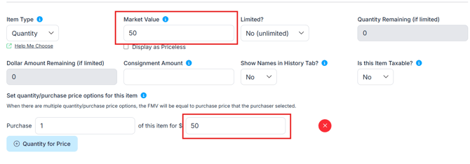 ℹ️ Info: FMV only applies to quantity items like raffle tickets, wine pulls, or games.