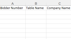 Fill in the Bidder Number and Table Name/Number column in the spreadsheet.