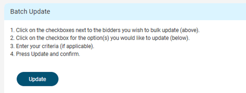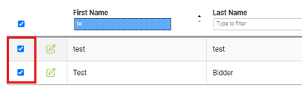 Select multiple bidder checkboxes on the Manage Bidders screen.