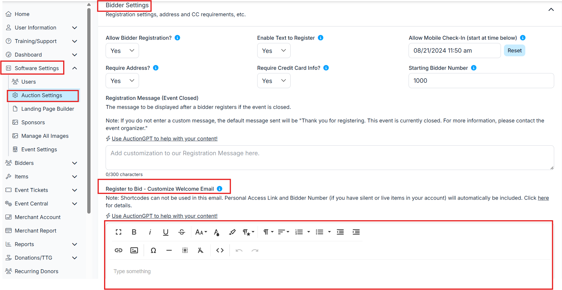 When a guest registers as a bidder, ClickBid automatically sends them a Welcome Email with important event info. You can customize part of this message to give it a more personal or branded touch.