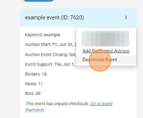 Need to clean up your Events tab or close out a past event? You can deactivate an event once its date has passed. This removes it from your active list, while still allowing you to manage any final payments or data.
