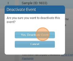 This action cannot be undone. Once deactivated, the event is no longer listed under active events.