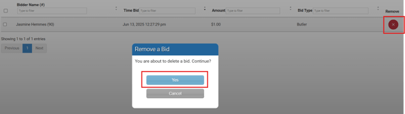 Removing a bid does not notify the bidder — if necessary, follow up with them manually.