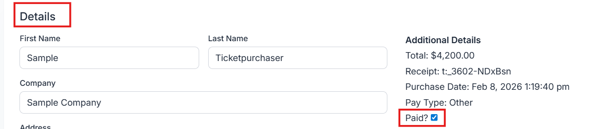 Once you've entered a ticket sale, you may need to manually mark it as paid: