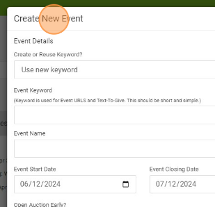 - Open Auction Early? (if you want to immediately open your event for bidding/purchases)