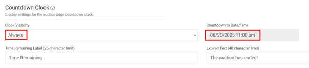 You’ll see a preview of both the countdown timer and the expired message on your Auction Page.